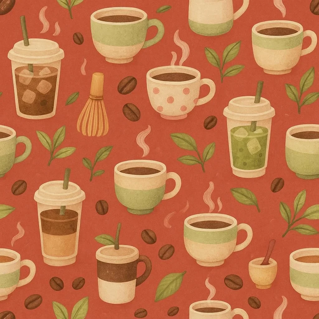 Cozy decor designed for matcha, coffee, and tea lovers.